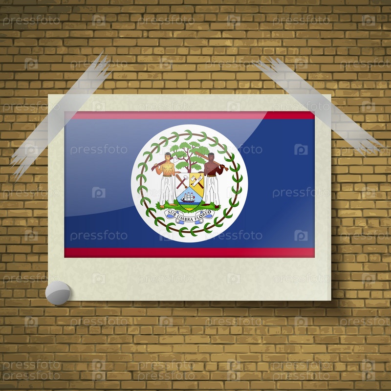 Флаги Белиза в кадре на фоне кирпича. Вектор