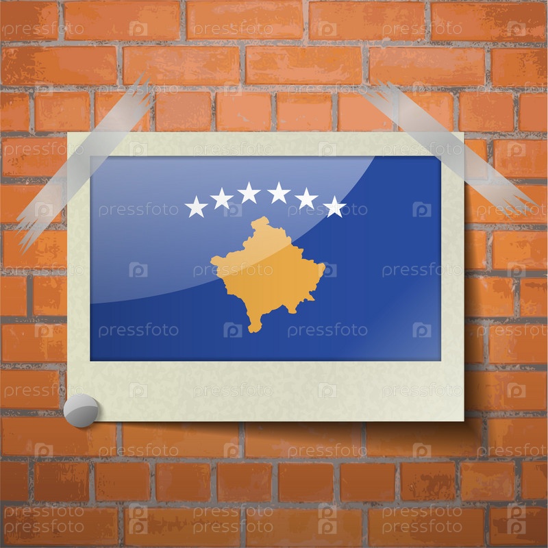 Флаги Косово, скотч приклеенный к красной кирпичной стены