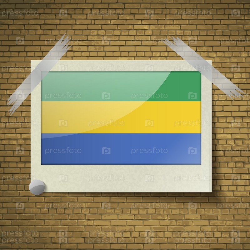 Флаги Габона в кадре на фоне кирпича. Вектор