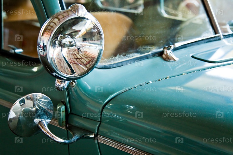 Зеленый ретро-автомобиль крупным планом