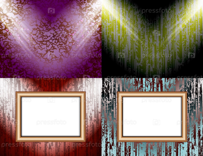 Набор красочных абстрактных фонов и рамки для текста или фотографий, освещенный прожекторами. вектор
