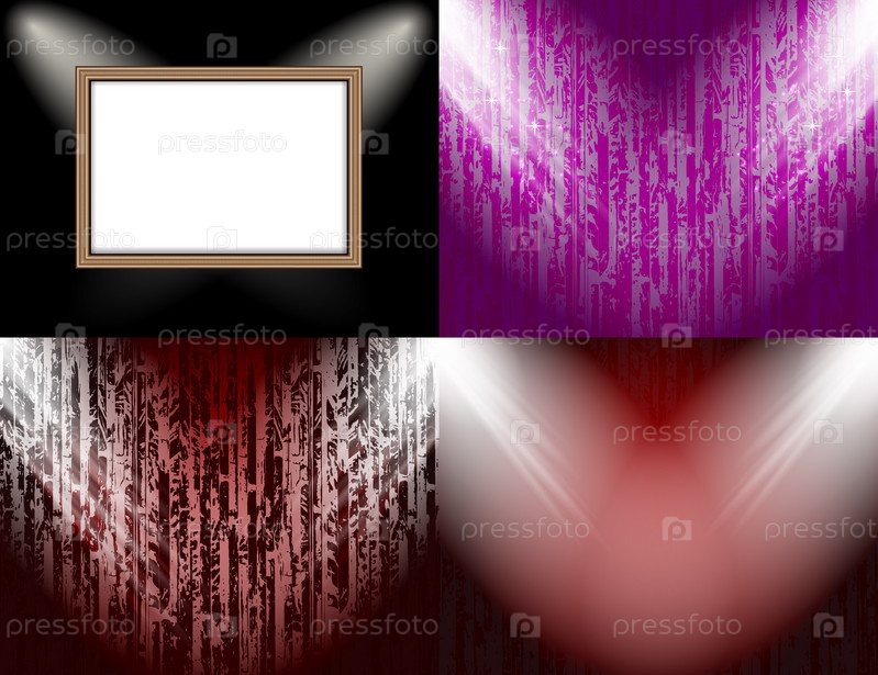 Набор красочных абстрактных фонов и рамки для текста или фотографий, освещенный прожекторами. вектор