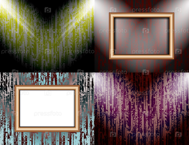 Набор красочных абстрактных фонов и рамки для текста или фотографий, освещенный прожекторами. вектор