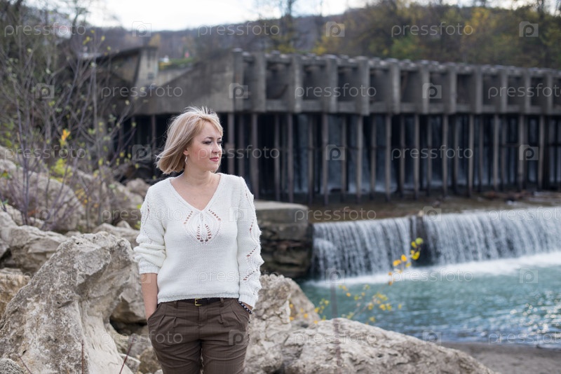 Женщина позирует на улице