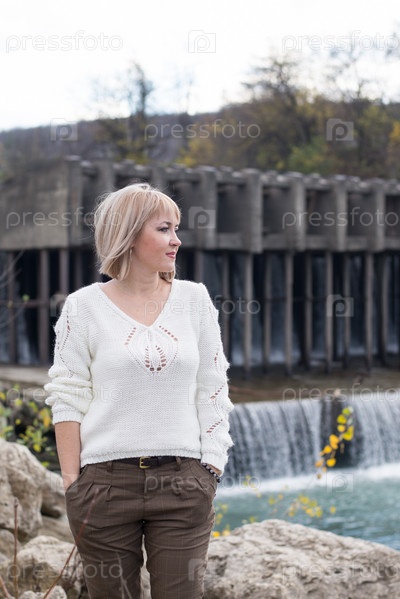 Женщина позирует на улице