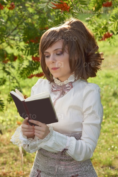 Ретро портрет женщины за чтением в саду