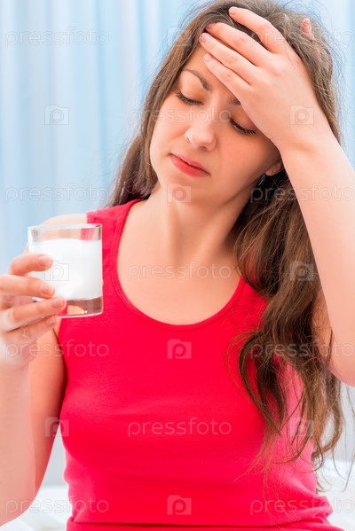 Девушка держит стакан с лекарством