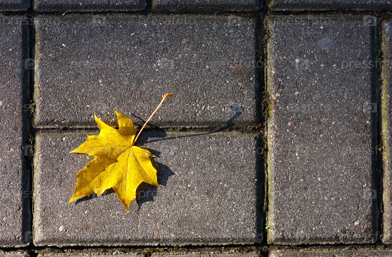 Желтый кленовый лист на тротуаре