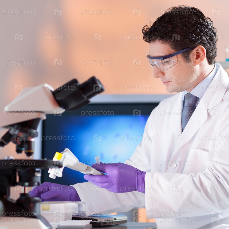 Ученые проводят опыты и исследования в лаборатории