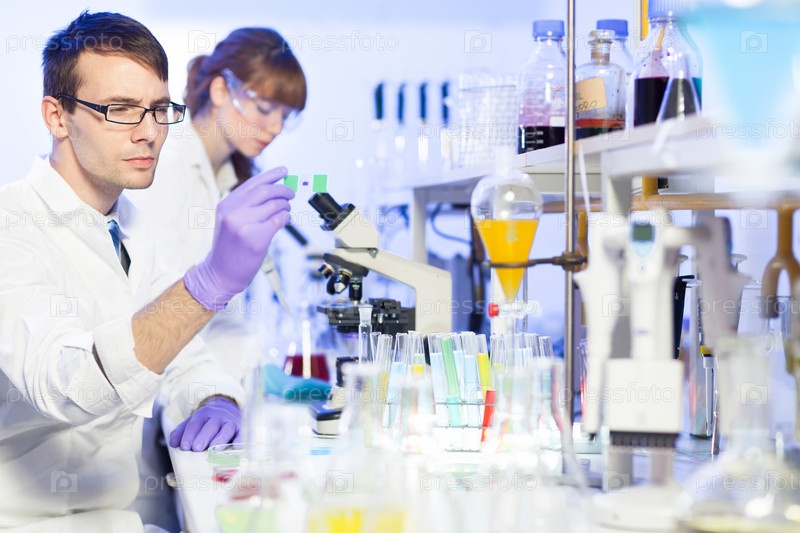 Ученые проводят опыты и исследования в лаборатории