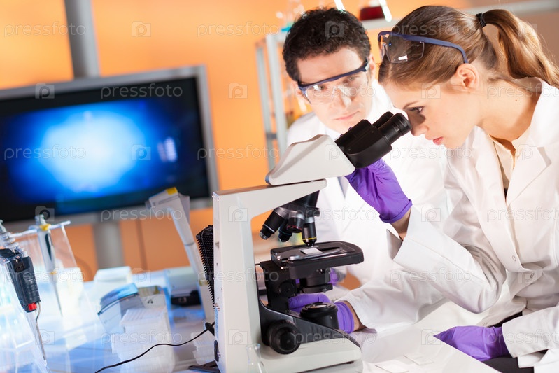 Ученые проводят опыты и исследования в лаборатории