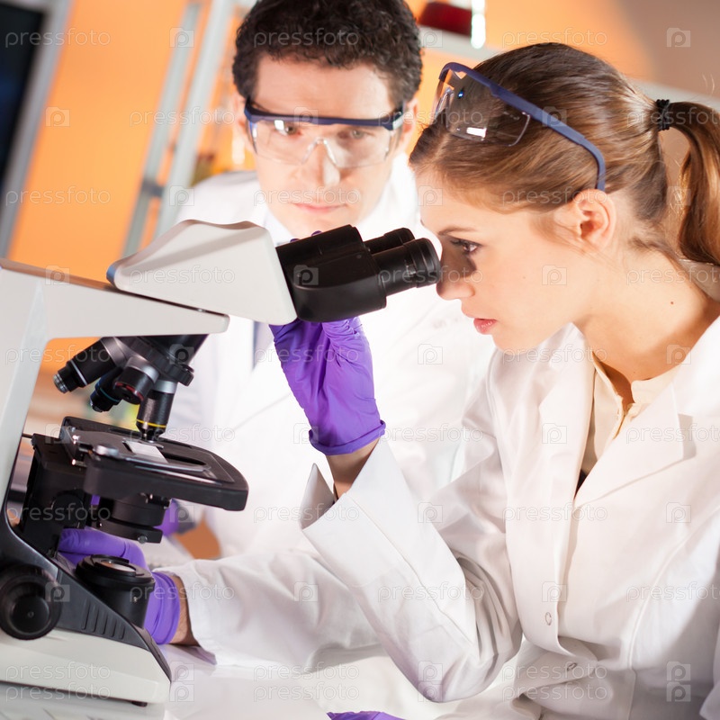 Ученые проводят опыты и исследования в лаборатории