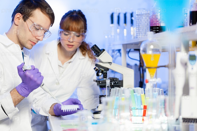 Ученые проводят опыты и исследования в лаборатории