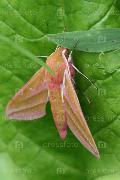Мотылек крупным планом на зеленом листе