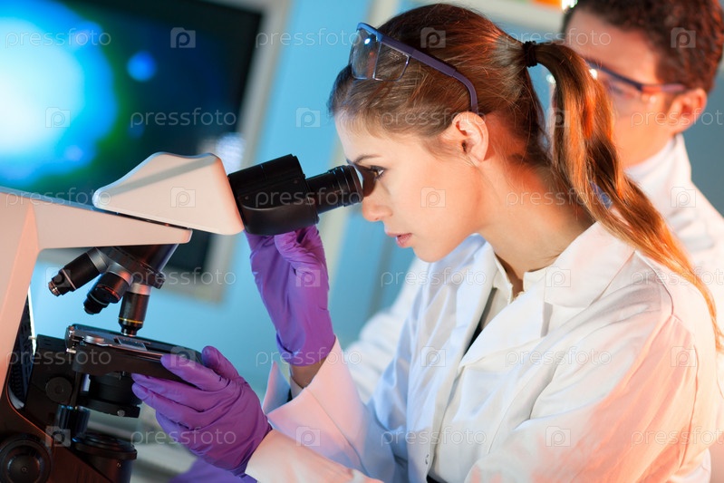 Ученые проводят опыты и исследования в лаборатории