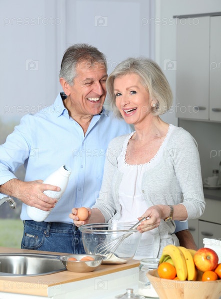 Пожилые супружеские пары в кухне