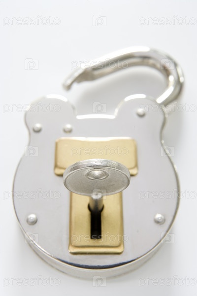 Замок с ключом на белом фоне