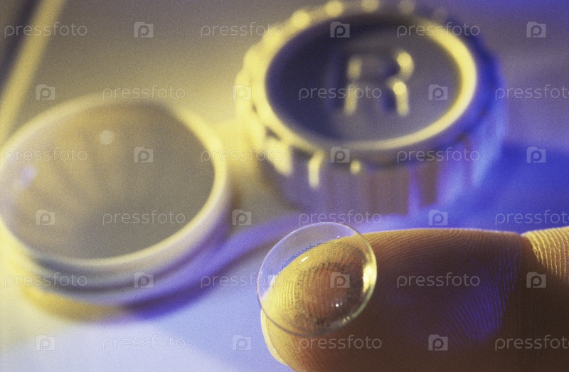 Контактные линзы на кончике пальца