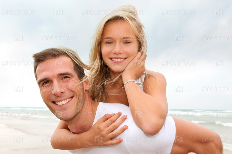 Отец и дочь на пляже