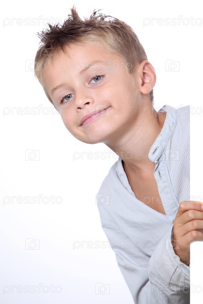 Маленький мальчик с доска объявлений