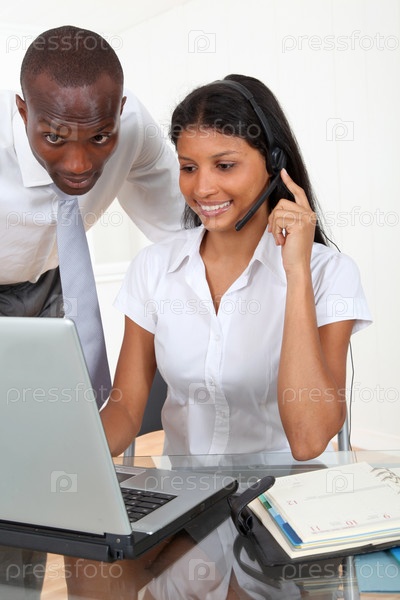 Секретарь с менеджером в офисе