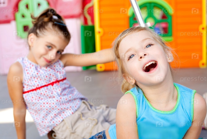 Дети счастливы сестренка девочки играют в игровая площадка