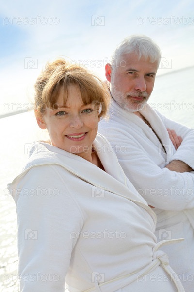 Пожилые супружеские пары в Халат, стоящий на понтон