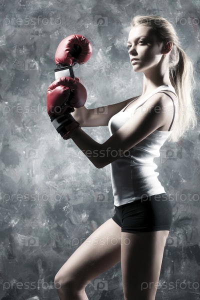 Боксер женщина мода. На фоне стены