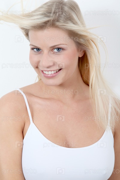 Красивая блондинка женщина на белом фоне