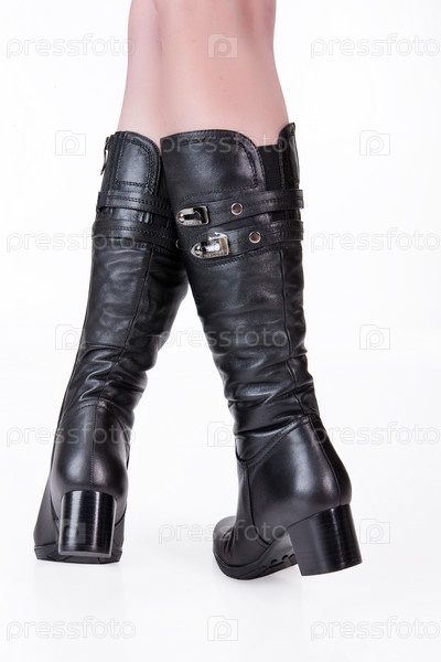 Женские ноги в кожаных сапогах на изолированном белом фоне