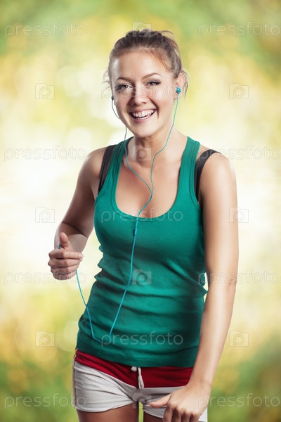 Молодая женщина на открытом воздухе с музыкальный проигрыватель