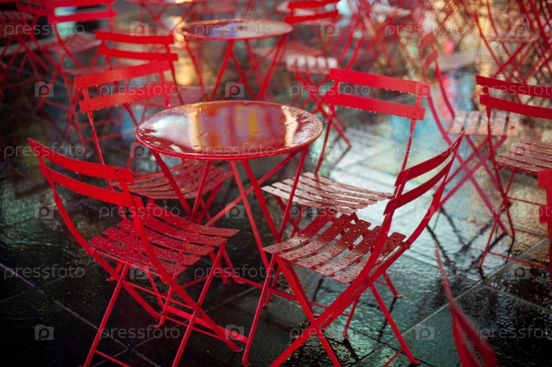 Пустые столы и стулья в Таймс-сквер, Нью-Йорк Сити, США