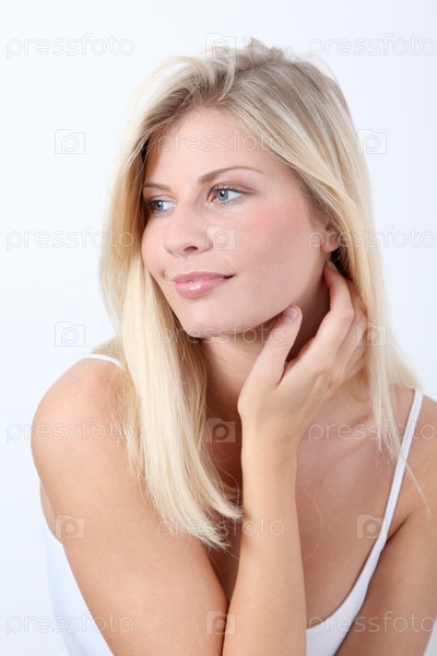 Красивая блондинка женщина на белом фоне