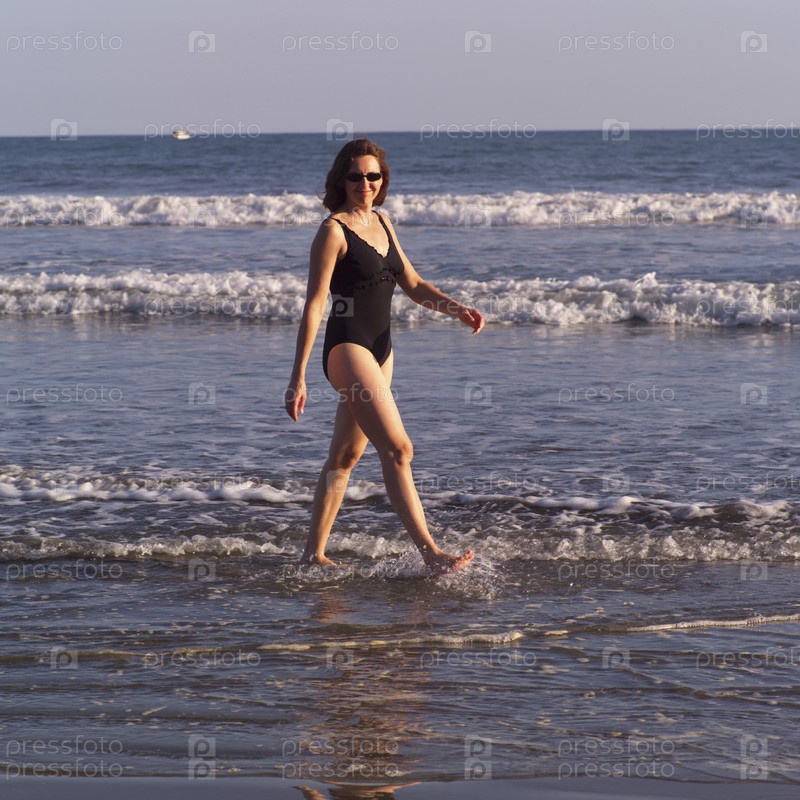 Женщина ходить в океане