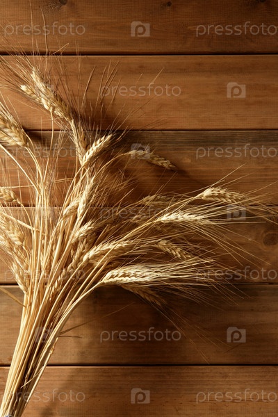 Пшеница золотая Спайк уха над деревянными фоне