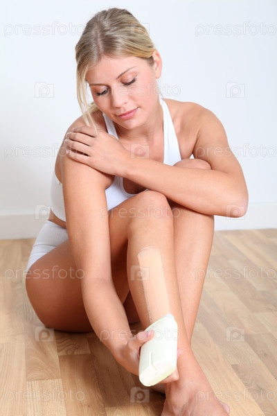 Красивая блондинка женщина, используя для удаления волос воском