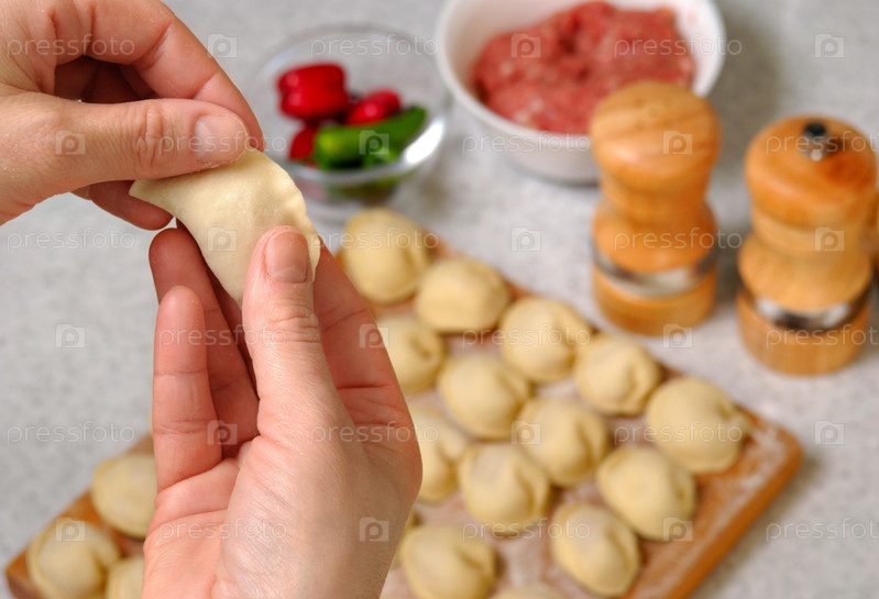 Сырые пельмени в человеческих руках