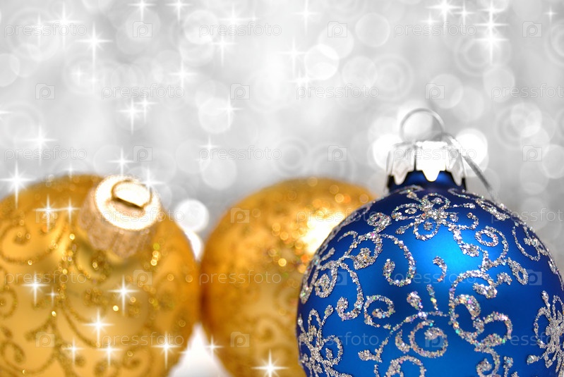 Рождественская елка синие и желтые шарики более размытым фон. Малая глубина резкости