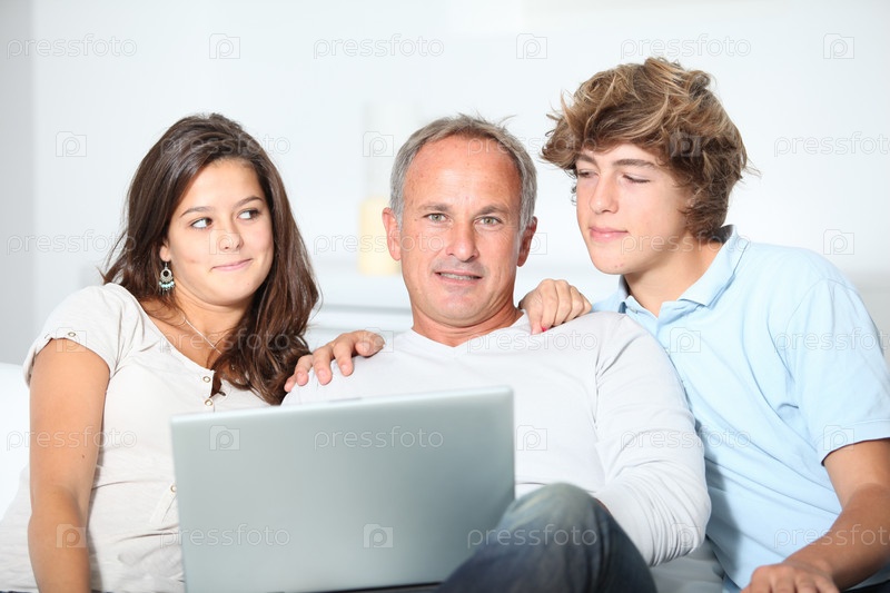 Семья с ноутбуком