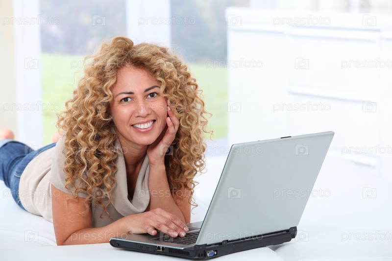 Женщина на дому с использованием портативного компьютера