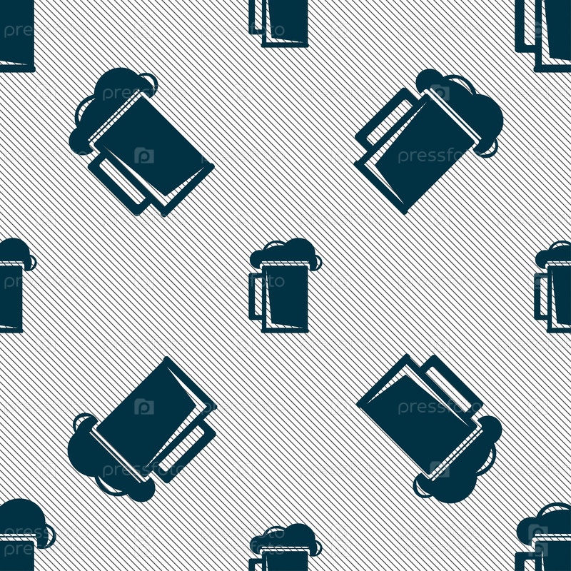 Бокал пива значок знак. Бесшовный фон с геометрической текстурой. Вектор