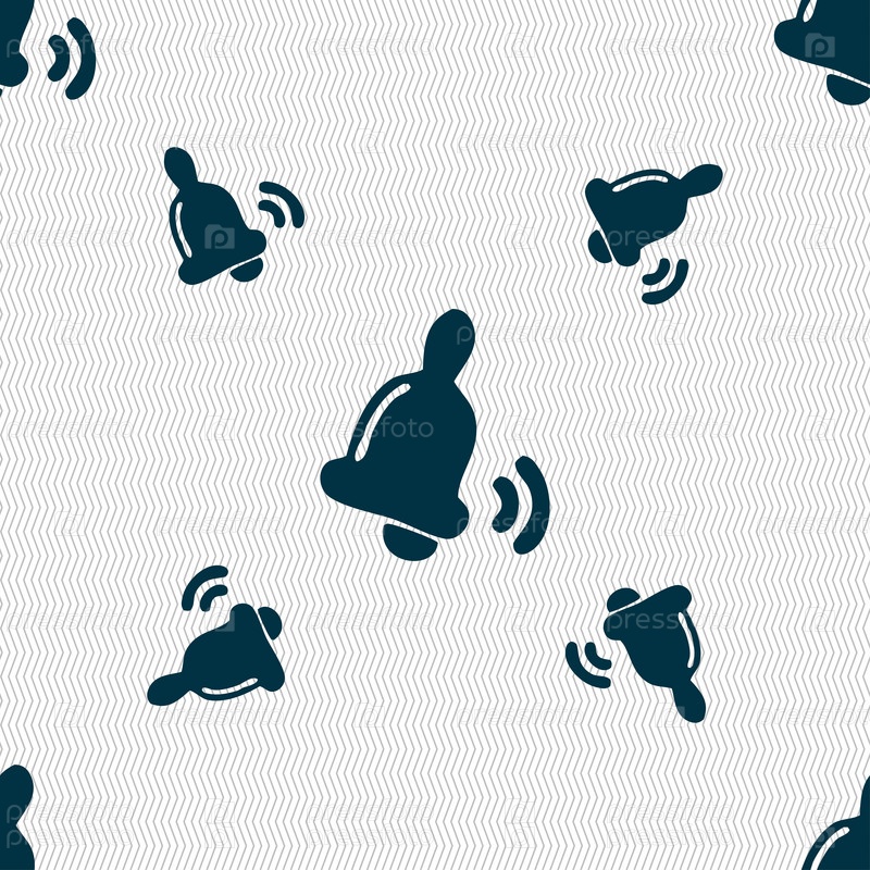 Колокольчик значок знак. Бесшовный фон с геометрической текстурой. Вектор