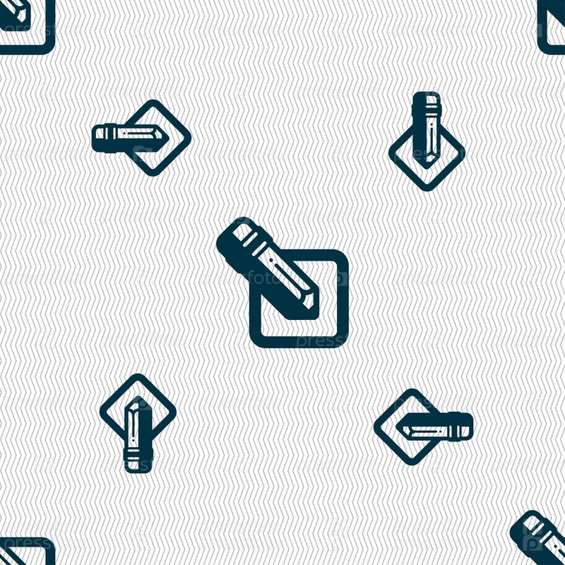 Карандаш значок знак. Бесшовный фон с геометрической текстурой. Вектор