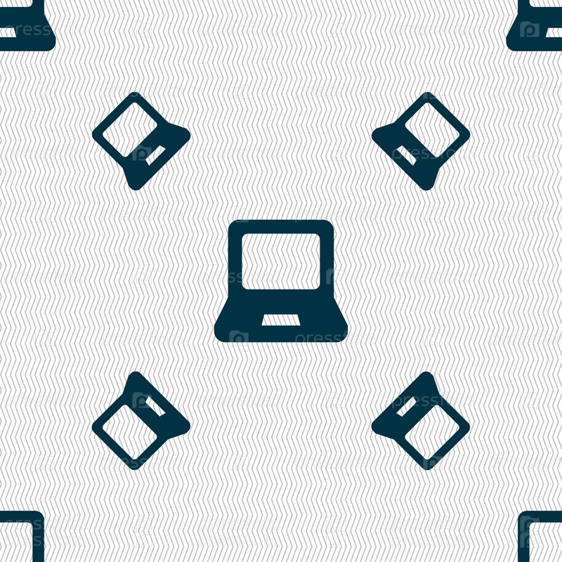 Ноутбук значок знак. Бесшовный фон с геометрической текстурой. Вектор