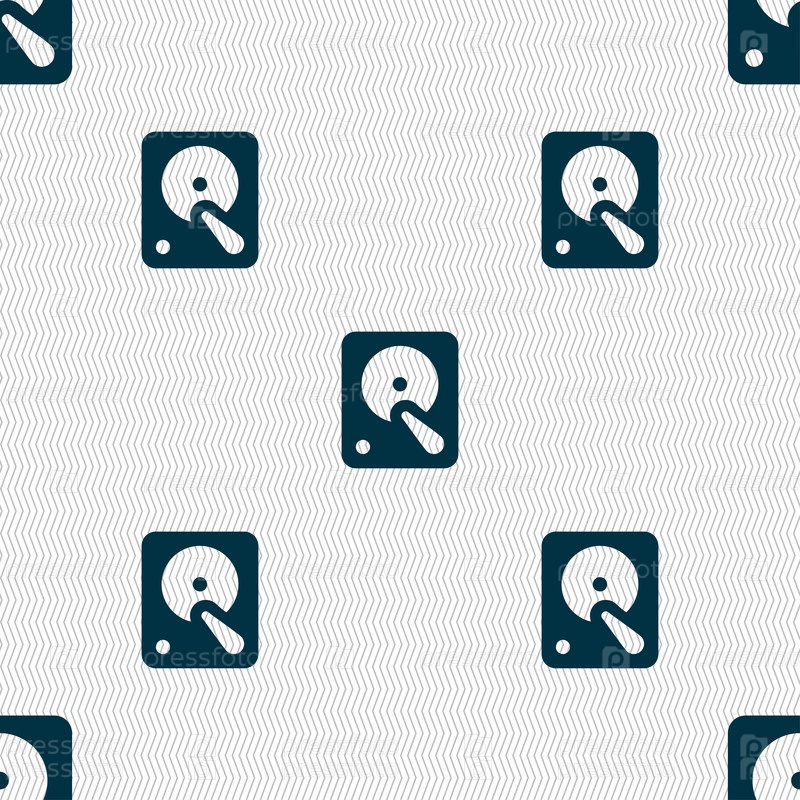 Жесткий диск значок знак. Бесшовный фон с геометрической текстурой. Вектор