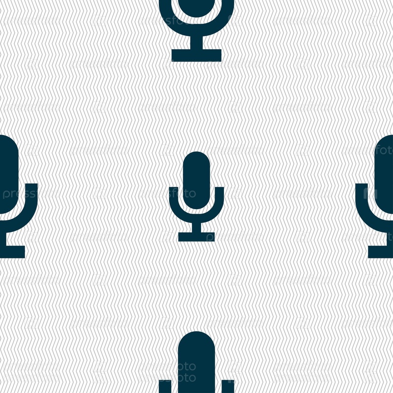 Значок микрофона знак. Бесшовный фон с геометрической текстурой. Вектор