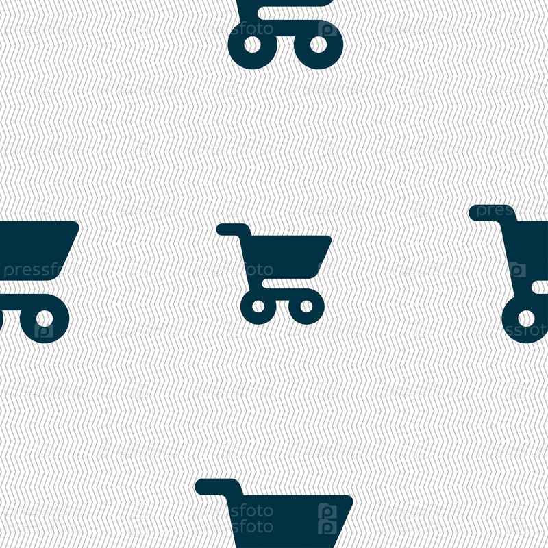 Торговый знак значок Корзина. Бесшовный фон с геометрической текстурой. Вектор