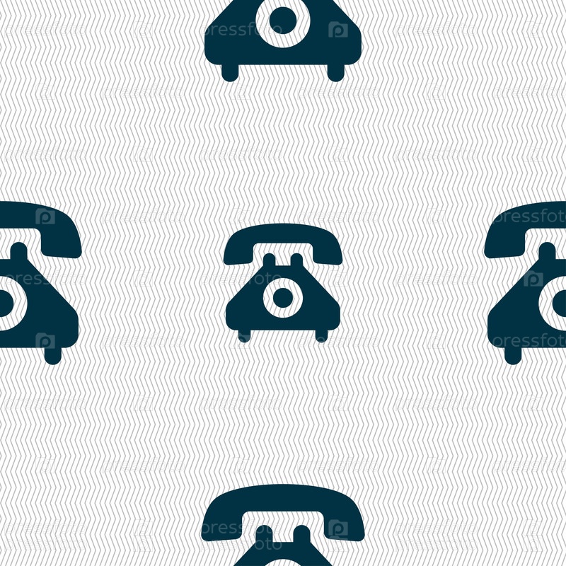 Ретро телефон телефон значок знак. Бесшовный фон с геометрической текстурой. Вектор