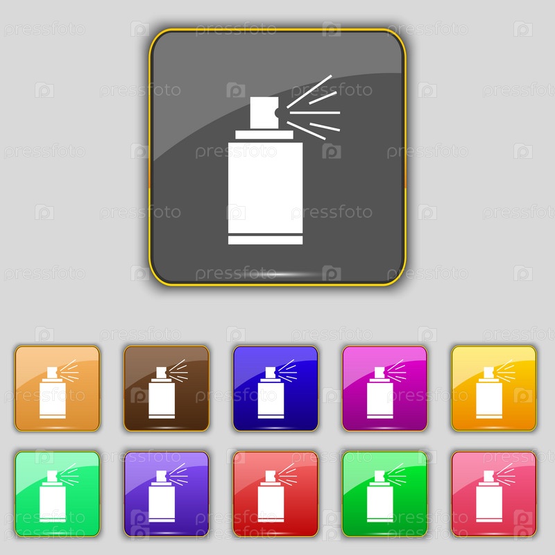 Граффити спрей может подписать значок. Аэрозольные краски символ. Набор цветных кнопок. Вектор