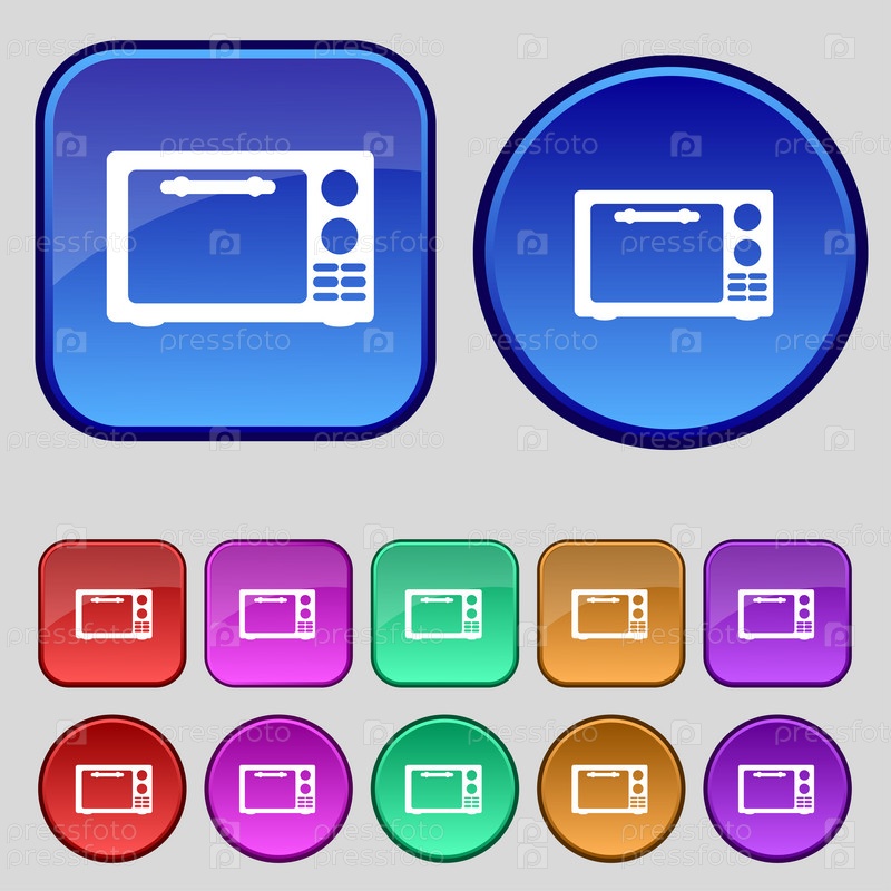 Микроволновая печь знак значок. Электрическая плита символ. Красочные кнопки установки. Вектор